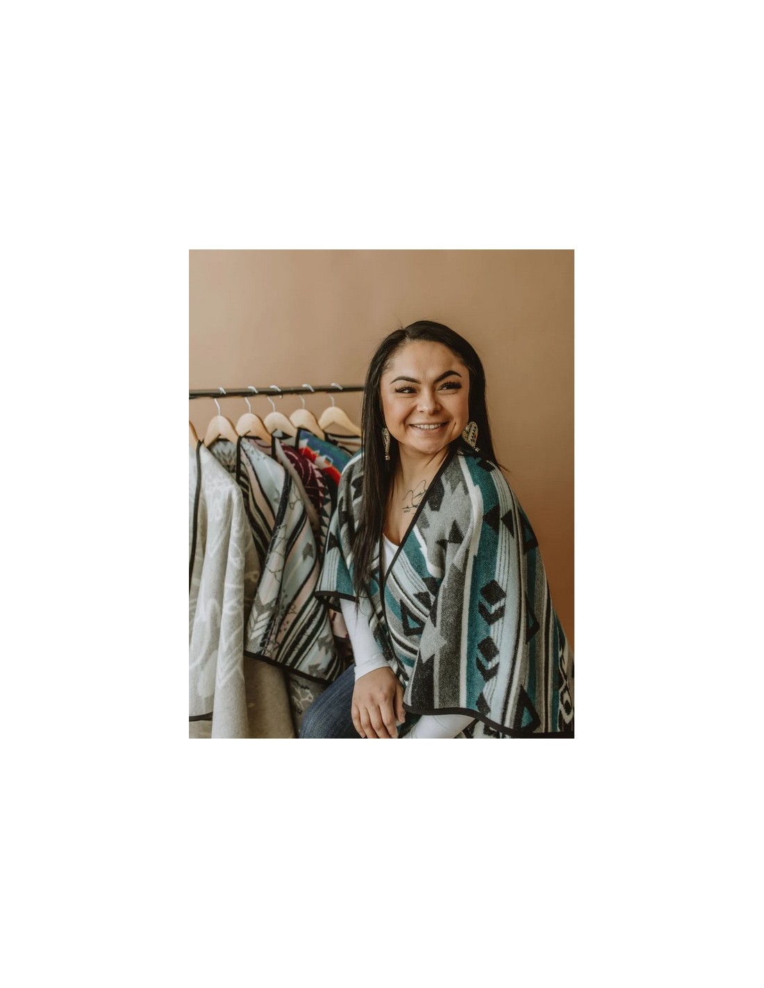 Trisha Pitura is a creative force, mother, entrepreneur and co-owner of Mini Tipi. She is originally from Sudbury, Ontario and she is a member of Nipissing First Nation. A couple of years ago, she started reconnecting with her culture. Now she is able to explore her identity as an Ojibwe woman through fabrics, creativity, and her business, Mini Tipi.